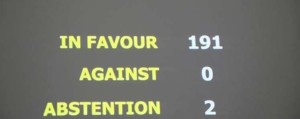 O texto promovido pelo governo cubano recebeu 191 votos a favor e 2 abstenções, de EUA e Israel, países que tinham se pronunciado contra durante 24 anos seguidos.