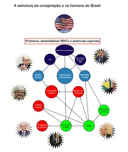Em verde, finalmente, os agentes nacionais desse golpe: a Lava Jato e a PGR, firmemente empenhados na destruição da estrutura atual de grandes empresas brasileiras; a mídia e o mercado.